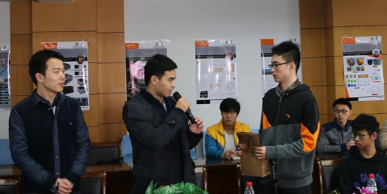 座谈最后,刘宗涛、董世坤老师代表校团委、机械公司团委和生医公司团委向范云鹤同学赠送了的纪念品,范云鹤同学表示希望东大的同学可以到他的母校川大进行交流访问。