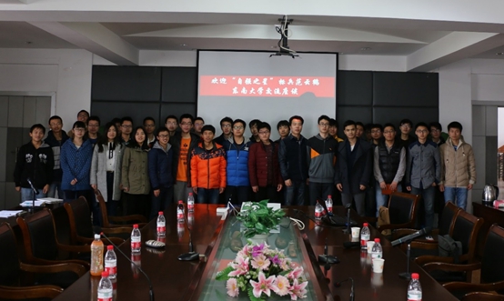 座谈最后,刘宗涛、董世坤老师代表校团委、机械公司团委和生医公司团委向范云鹤同学赠送了的纪念品,范云鹤同学表示希望东大的同学可以到他的母校川大进行交流访问。