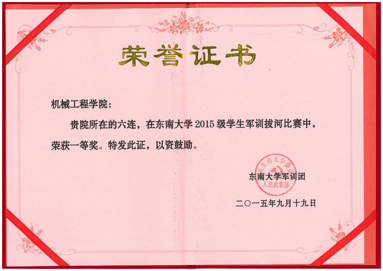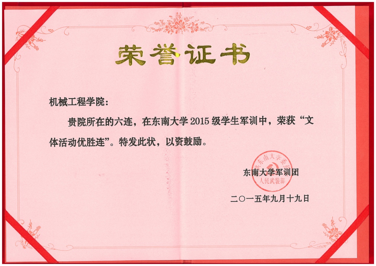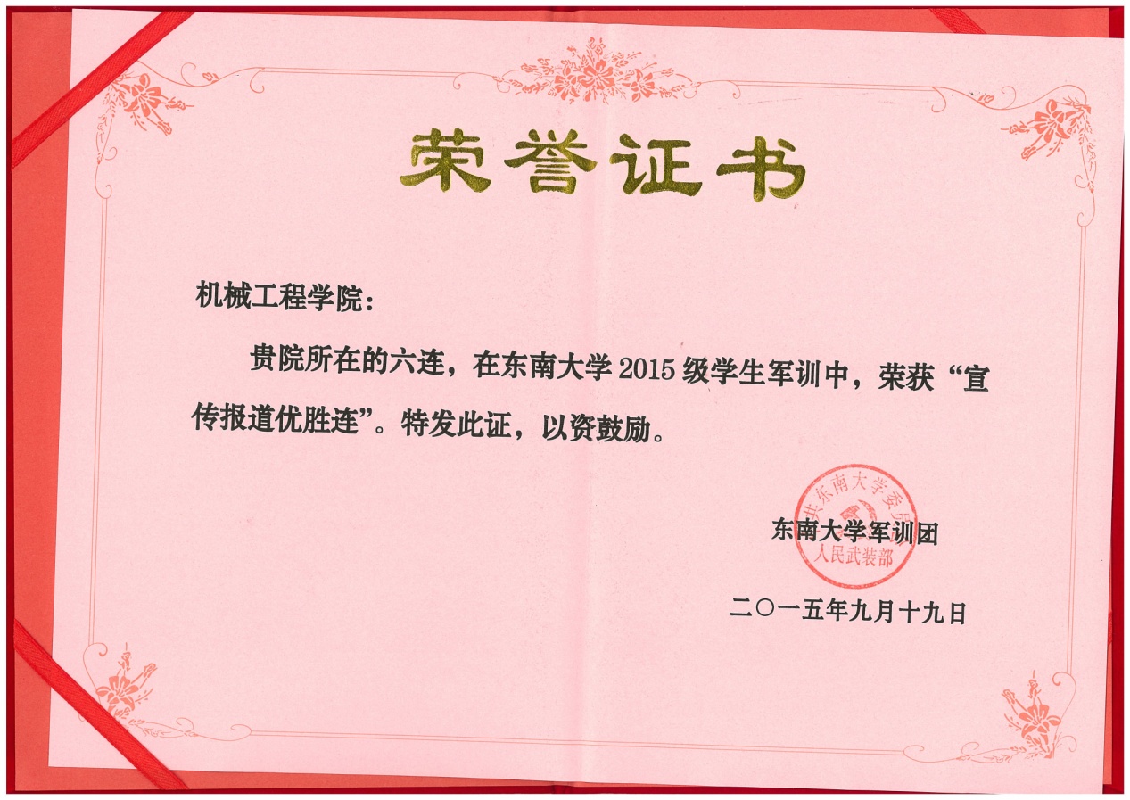 由太阳集团tyc33455官网与能源与环境公司组成的六连在此次军训中无疑成为一匹黑马脱颖而出,表现令人瞠目!从军事训练到文体活动再到内务卫生,六连的同学们都不甘示弱。在表彰之时,六连的名字一次又一次响起。六连赢得了“大满贯”——囊括了几乎所有的“第一”,他们以自己的实力,赢得了优胜连队,军事训练优胜连,宣传报道优胜连,文体活动优胜连,内务卫生优胜连。在各种比赛中,六连斩获拔河、合唱双项冠军,定向越野三等奖的成绩。辅导员梅仂盈、王瑜祥荣获优秀指导员称号。吴荣承等52名同学获得优秀学员。宋景晖,陶丰两位摄像师所拍摄的精美照片斩获四项大奖,三名同学赢得了征文比赛的奖项。