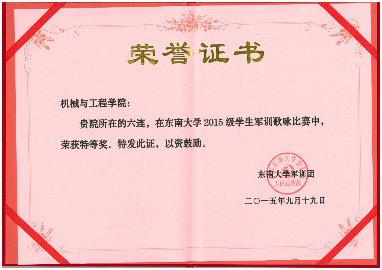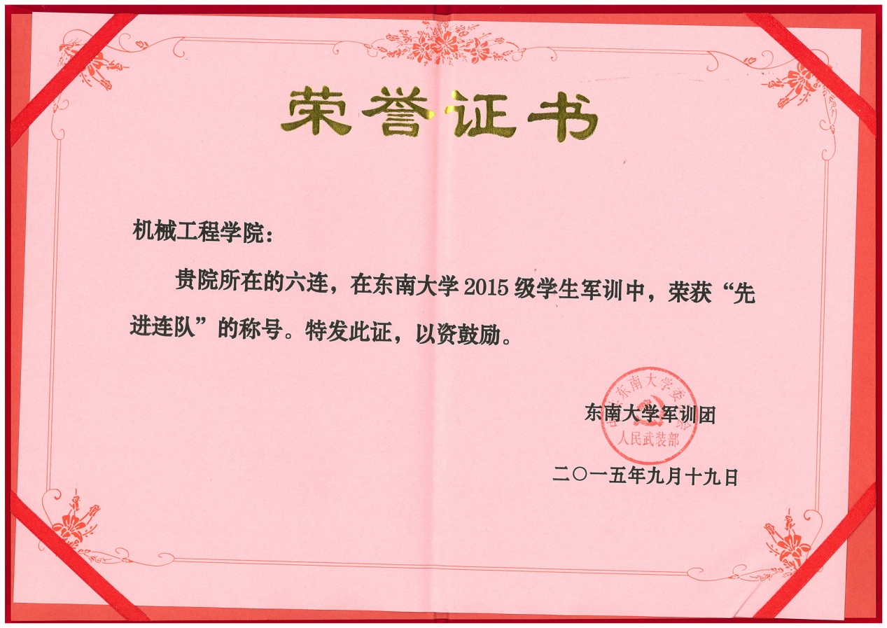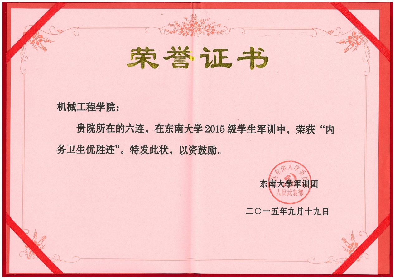 由太阳集团tyc33455官网与能源与环境公司组成的六连在此次军训中无疑成为一匹黑马脱颖而出,表现令人瞠目!从军事训练到文体活动再到内务卫生,六连的同学们都不甘示弱。在表彰之时,六连的名字一次又一次响起。六连赢得了“大满贯”——囊括了几乎所有的“第一”,他们以自己的实力,赢得了优胜连队,军事训练优胜连,宣传报道优胜连,文体活动优胜连,内务卫生优胜连。在各种比赛中,六连斩获拔河、合唱双项冠军,定向越野三等奖的成绩。辅导员梅仂盈、王瑜祥荣获优秀指导员称号。吴荣承等52名同学获得优秀学员。宋景晖,陶丰两位摄像师所拍摄的精美照片斩获四项大奖,三名同学赢得了征文比赛的奖项。