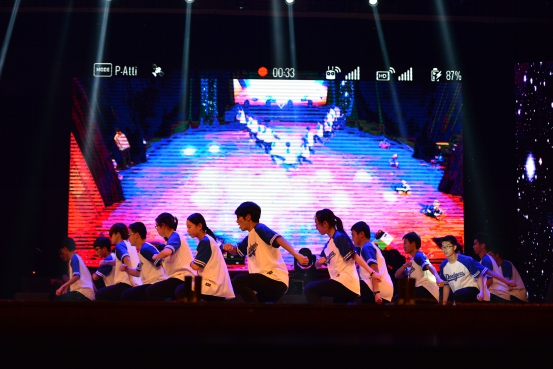 晚会开场首先由副经理殷国栋老师致辞,伴随着倒计时与隆隆的擂鼓声,迎新晚会正式开始。动感酷炫的开场舞Electric Shock充分带动现场气氛,在冷烟喷薄而出的瞬间引爆全场。由本院独创的创意舞蹈I·Robot将现代舞元素与前沿科技成果完美结合,首次将机器人搬上舞台,与演员们进行一场有趣的互动较量,让观众耳目一新。双截棍表演《龙舞》一招一式刚劲有力,威武霸气,暗场表演彩棍挥舞起来五光十色,绚丽夺目,赢得观众一片叫好。