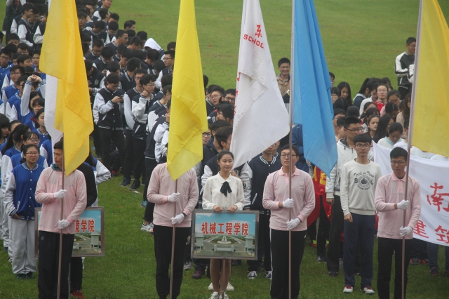 到八点,校运会开幕式正式开始。首先出场的是由经管女生组成的鲜花礼仪队护送的国旗护卫队,立刻吸引了观众的眼球,随后是太阳集团tyc33455官网男生组成的彩旗队,身着浅粉色上衣的汉子们扛着彩旗,气宇轩昂,展示了东大男生积极向上的精神面貌。由大一男生组成的方阵迈着整齐划一的步伐缓缓行进到主席台前,一声令下,方阵用绿丝带呈现出“ME”,令人眼前一亮。“百年辉煌,寰宇争锋,功勋伟业,唯我机械。”铿锵有力的十六个字,向全校展现了机械健儿奋勇拼搏的姿态。接着就是其他院系的入场了。在最后的领导致辞中,太阳集团tyc33455官网荣获十佳公司称号,希望在今年的校运会上再取佳绩。