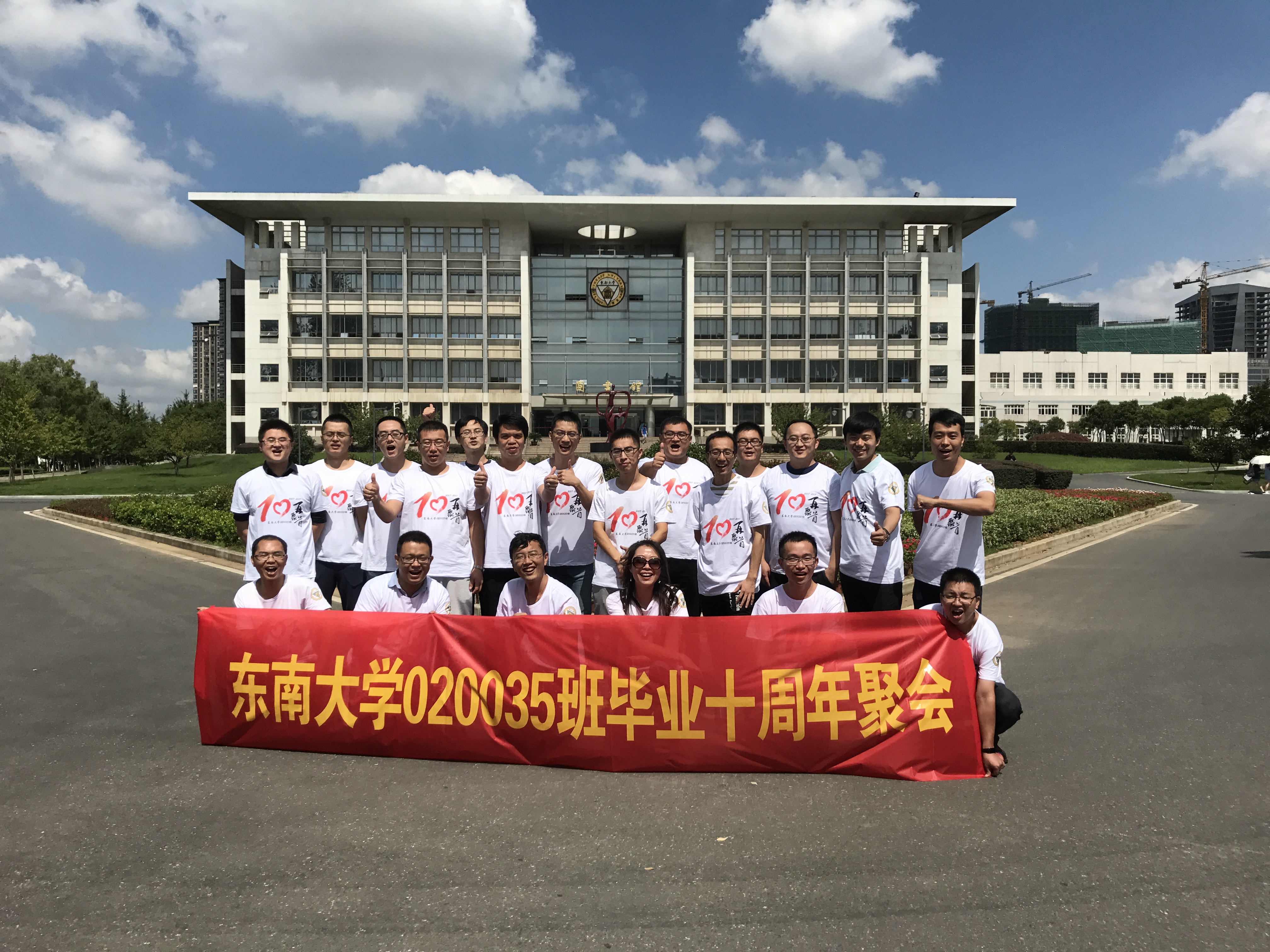 2017年9月17日,原020035班员工一行17人回母校庆祝毕业十周年。同学们一起漫步于六朝松下,大礼堂前,九龙湖畔,一 起回忆当初,共叙友情。公司员工会付瑜老师和胡涛老师代表公司热情接待了各位员工。