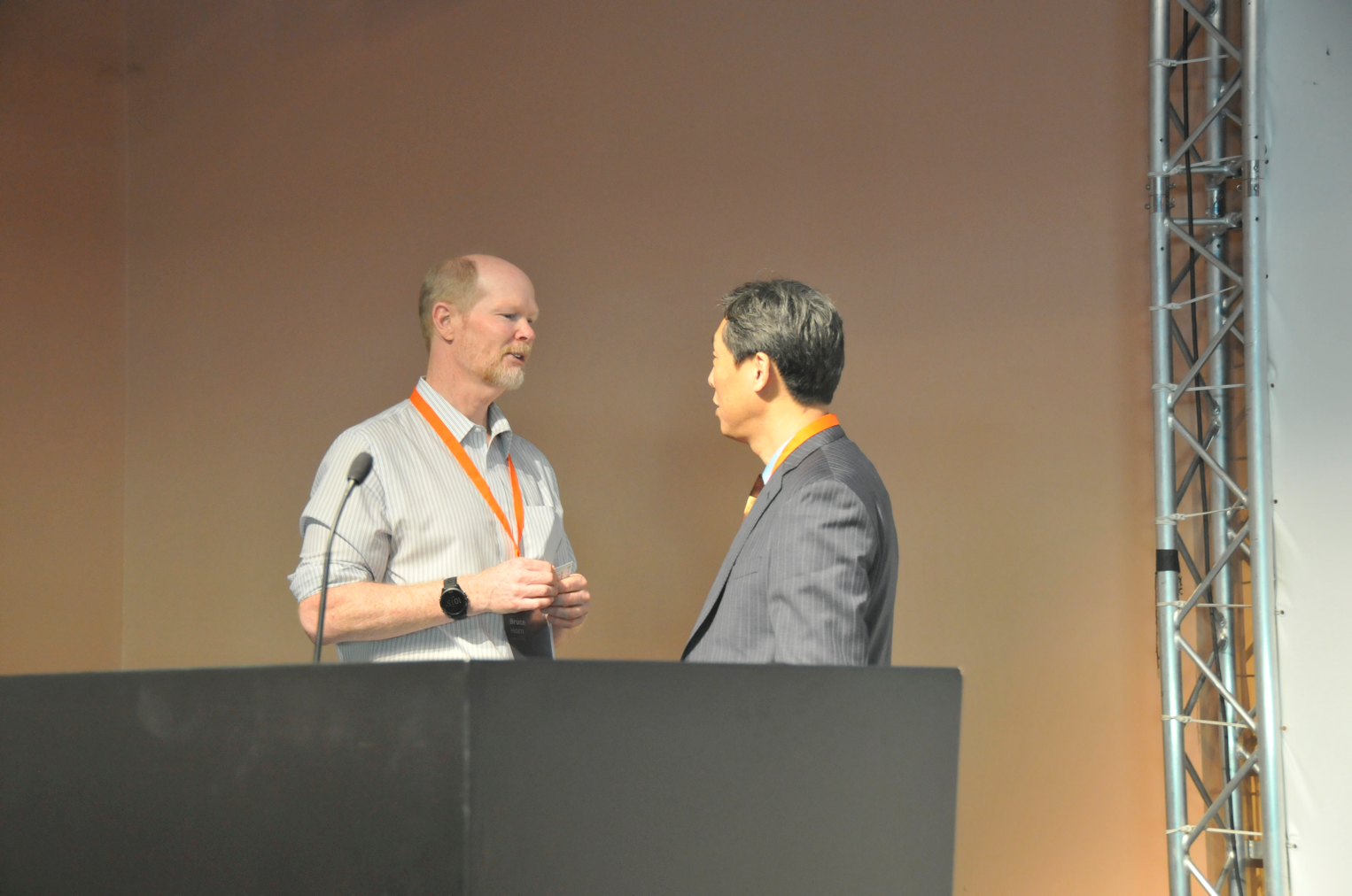 英特尔公司新技术集团(NTG)首席技术官Bruce Horn先生(前苹果公司技术总监,乔布斯同事,主持并开发了GUI、Macintosh Finder桌面图形用户界面)与薛教授就AI时代复杂信息系统人机交互界面的设计进行了饶有兴趣的交流和探讨。现场企业专家代表也针对报告内容与薛教授进行了深入交流,期待未来有进一步合作。