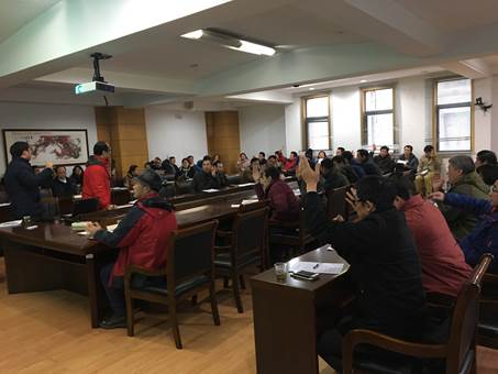大会在全场齐唱国歌声中拉开序幕。倪中华经理首先就一年来公司的各项工作向大会作了报告。倪经理介绍了2017年公司在教学和科研方面取得的成果,感谢教职工们的辛勤付出!同时也总结了公司目前的不足之处,希望大家能总结原因和经验,取得更多的成果。同时通报了团队建设经费的使用情况,希望大家能够充分利用学科经费,做更多的事,出更好的成果。最后就团队队伍建设提出了思路和举措,希望全院教职工要倍加努力,为公司“双一流”建设做出更多的贡献。