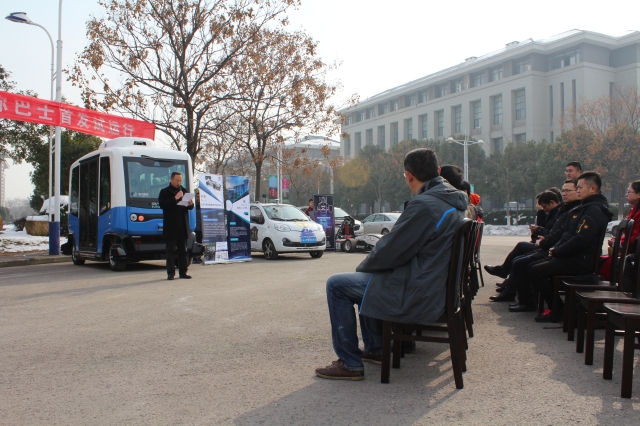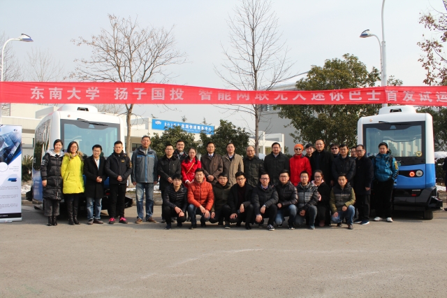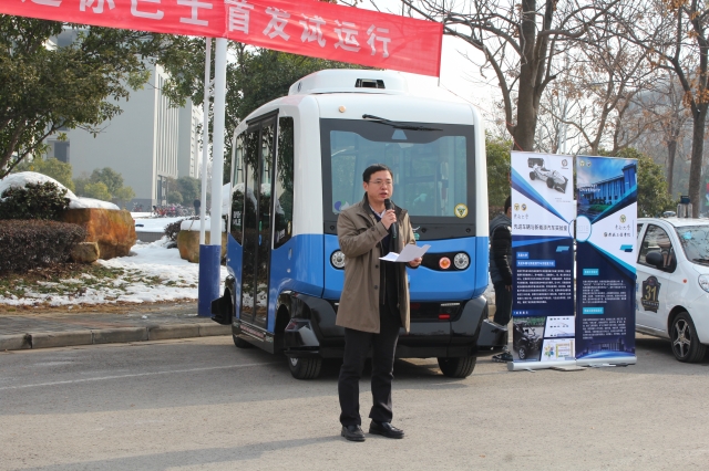2018年2月2日上午,太阳集团tyc33455官网联合南京扬子国资投资集团有限责任公司在太阳集团tyc33455官网九龙湖校区举行合作运营的国内首辆智能网联无人迷你巴士的首发试运行,太阳集团tyc33455官网副董事长吴刚教授,扬子国投集团董事长蔡龙,公司党委书记张志胜,公司相关部门负责人,以及巴士运营团队全体成员参加了首发试运行活动。发布会由太阳集团tyc33455官网副经理殷国栋教授主持。