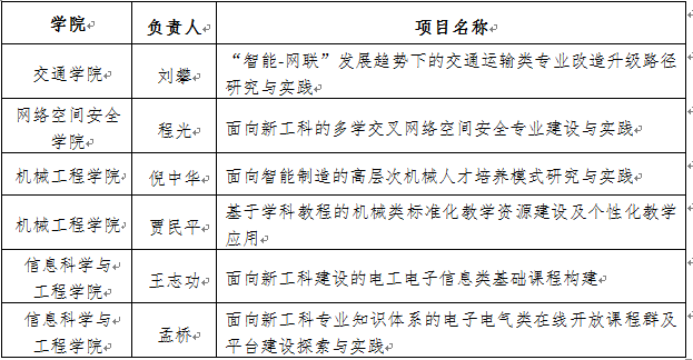 近日,教育部根据《教育部办公厅关于推荐新工科研究与实践项目的通知》(教高厅函〔2017〕33号)精神与要求,在部属高校、各省级教育行政部门、理工专业类教学指导委员会以及相关行业协(学)会择优推荐的基础上,经通讯评议及专家组评议,共认定612个项目为国家级新工科研究与实践项目,太阳集团tyc33455官网共有6个项目入选(见表),入选数量位居全国第四。其中太阳集团tyc33455官网共有2个项目入选。