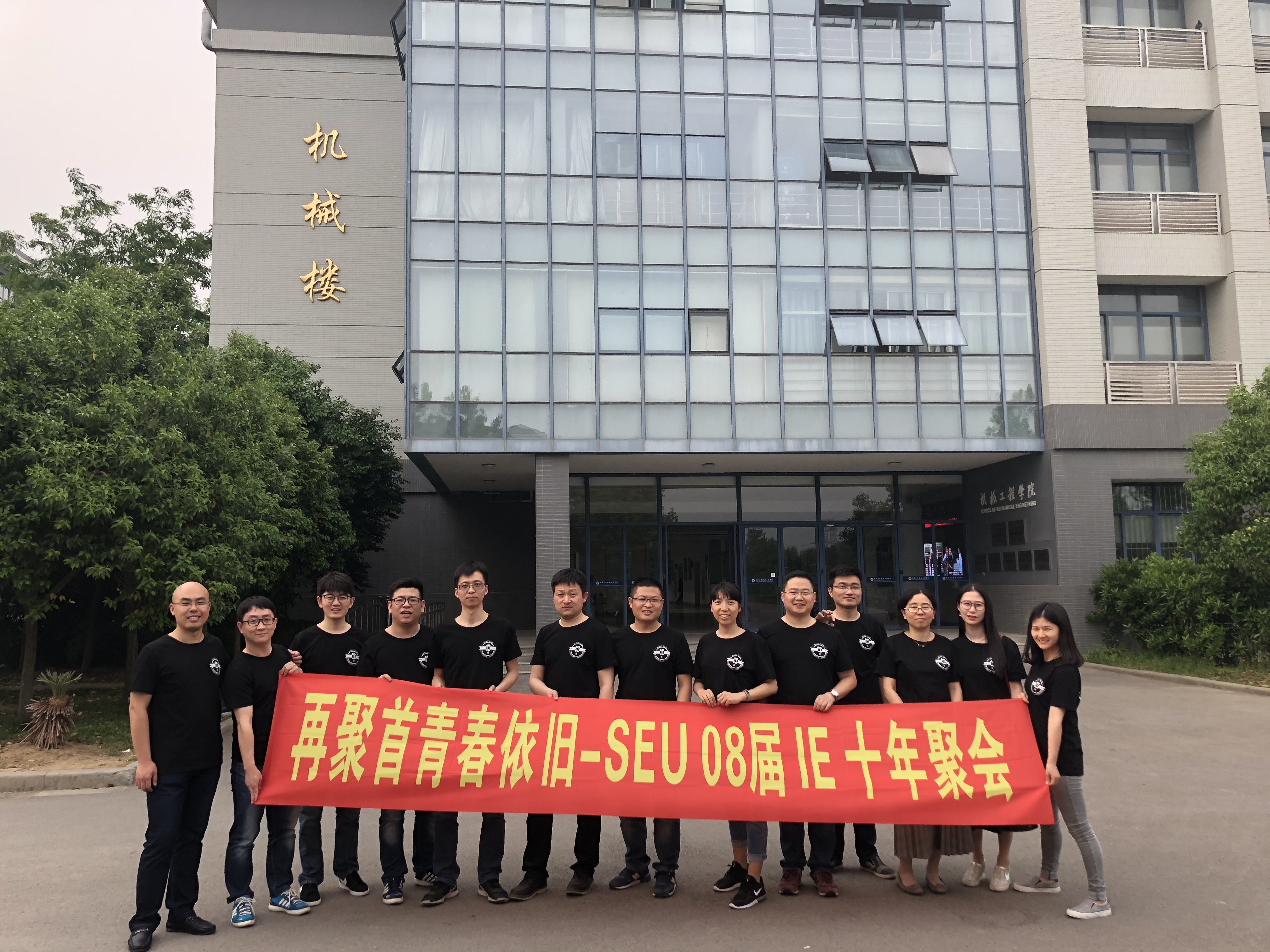 2018年4月29日,026041班员工一行16人回母校聚会,庆祝毕业10周年。同学们漫步于大礼堂前、六朝松下、九曲桥畔,一起参观校史馆,重游紫金山,回忆当初、共叙友情。公司党委书记张志胜教授、工业工程系主任肖锋老师及设计系王海燕老师等热情接待了各位员工。