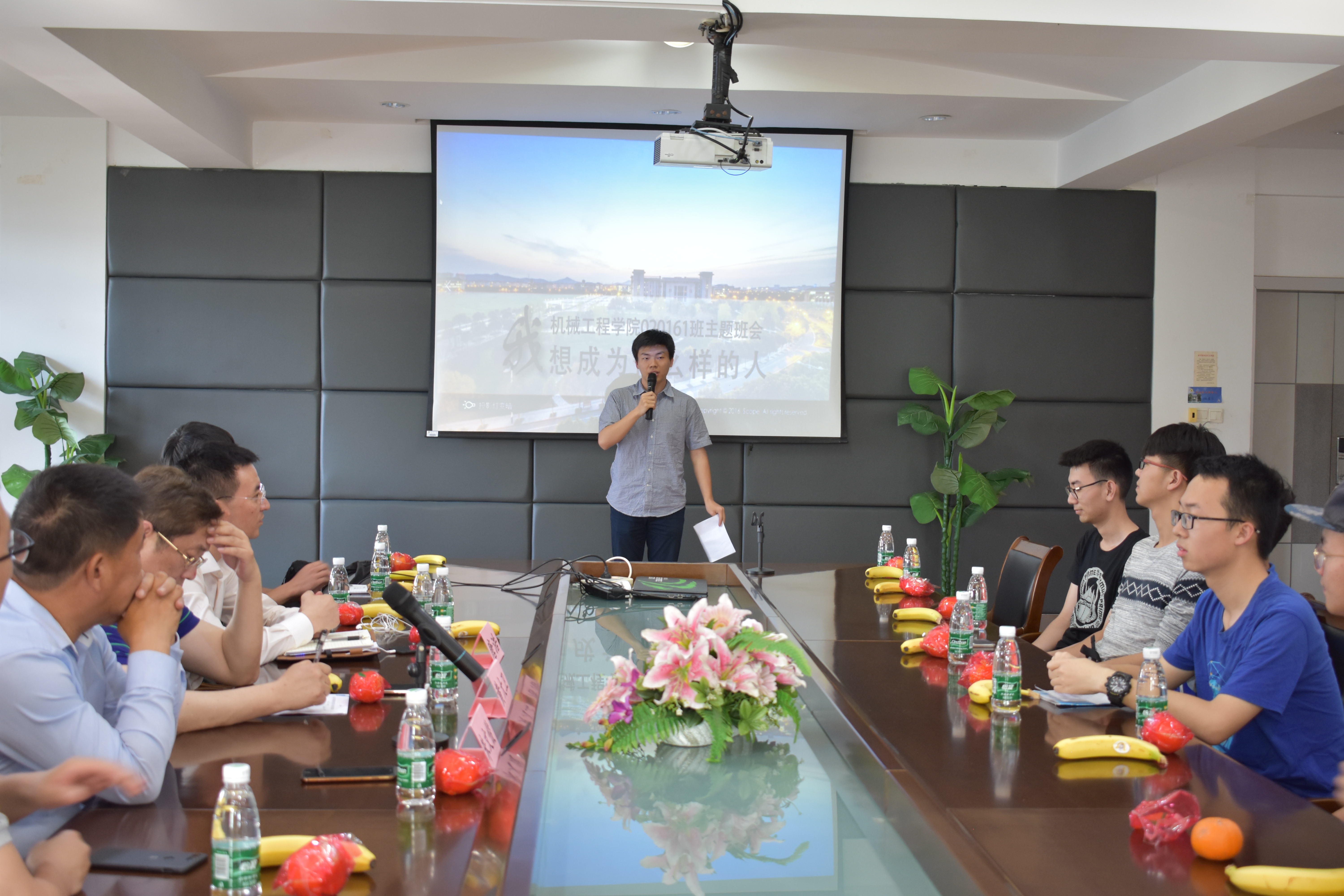 首先,由班长陈泽众向校、院领导汇报班级基本情况。