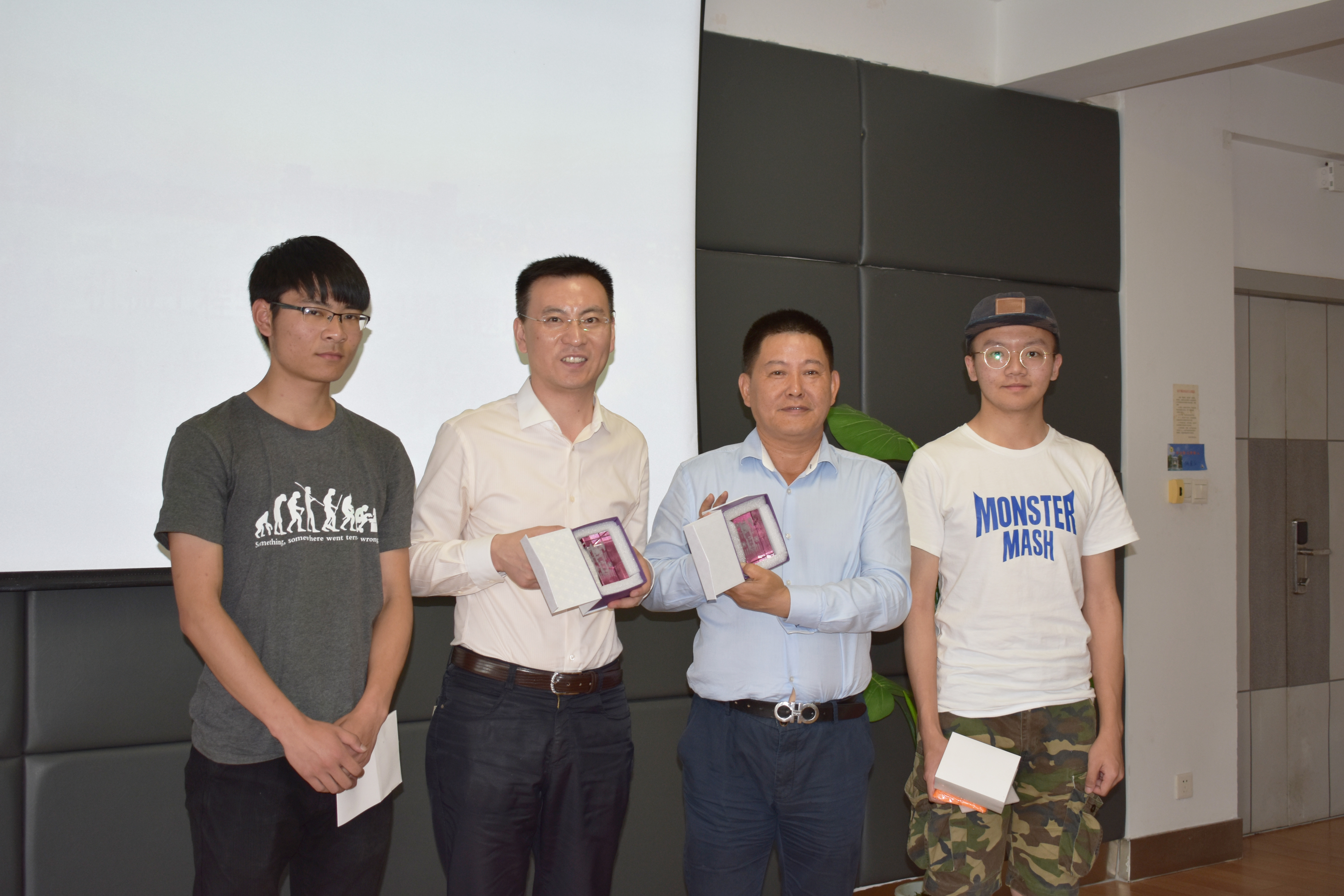 之后,由员工代表向员工赠送礼物,并合影留念。