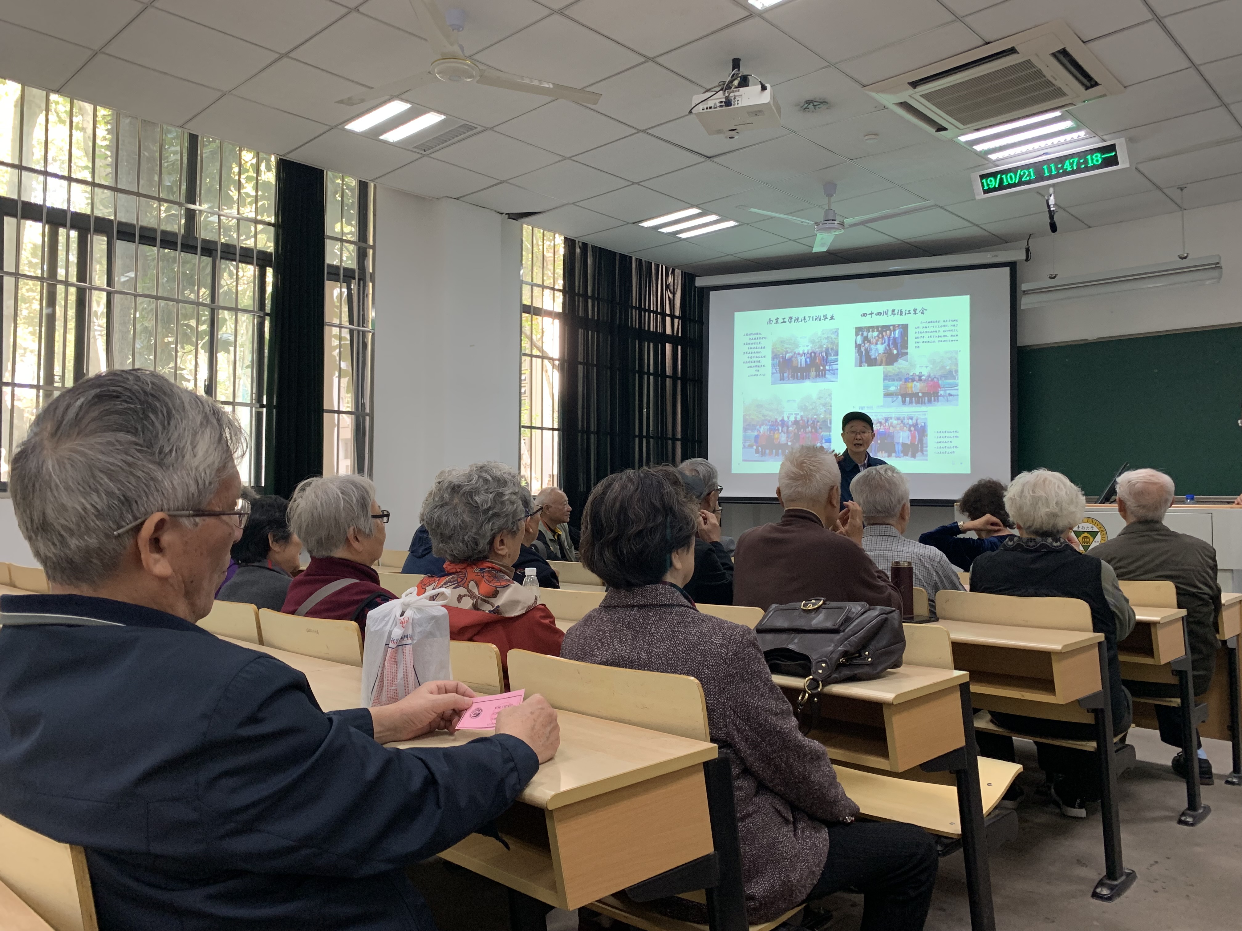 2019年10月21日上午,62届员工及亲属一行23人回母校四牌楼校区聚会。公司员工会秘书付瑜老师、公司科研秘书胡涛老师热情接待员工,并对他们的到来表示欢迎!