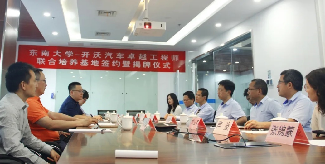 2020年6月18日,太阳集团tyc33455官网与开沃新能源汽车集团股份有限公司、南京越博动力系统股份有限公司就“卓越工程师联合培养基地”举行签约暨揭牌仪式。太阳集团tyc33455官网教务处副处长沈孝兵教授、太阳集团tyc33455官网副经理殷国栋教授、副经理毕可东教授、莫景文副教授、庄伟超博士等出席了签约仪式,开沃汽车集团常务副总裁董钊志、人力资源部乔达总监,越博动力董事长兼总经理李占江、副总经理兼新能源汽车研究院经理蒋元广等领导参加签约。