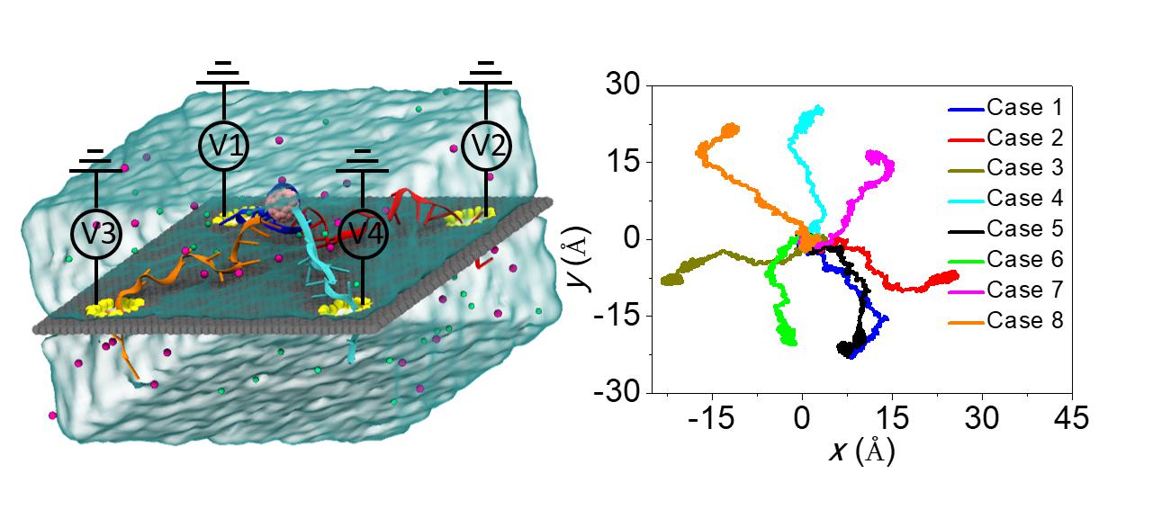 随着科技进步的发展,科学家们已经在人体内发现了众多的机器蛋白,如细菌鞭毛马达和肌球蛋白等,人体的正常工作离不开这些马达蛋白的协同作用。然而在探索生命的过程中仅仅去发现潜在的未知蛋白机器是远远不够的,设计和制造全新的仿生纳米机器也将进一步促进人类在生命科学领域的发展。司伟老师依托公司江苏省微纳生物医疗器械设计与制造重点实验室平台,设计研究了一种由纳米颗粒和DNA链组装而成的四足纳米机器人,通过调控石墨烯薄膜上正方形分布的四个纳米孔上的壁面电势,改变了纳米孔上的电荷特性和强度,为纳米机器人在纳米薄膜上的行走提供了动力支持。通过对纳米孔内的电渗和电泳的有效调控,形成电渗和电泳的联合或竞争驱动机制,通过详细的试验设计和数据分析,掌握了纳米机器人的驱动机理,实现了纳米机器人的精准定向移动。由于该机器人行走在固态薄膜上,易与半导体芯片进行集成,有望封装在极小尺度的芯片内,具有较高的便携性和实用性,可协助解决纳米尺度下的纳米操控问题和分子货物运载问题,将潜在应用于药物输送等关键诊疗领域,造福人类。