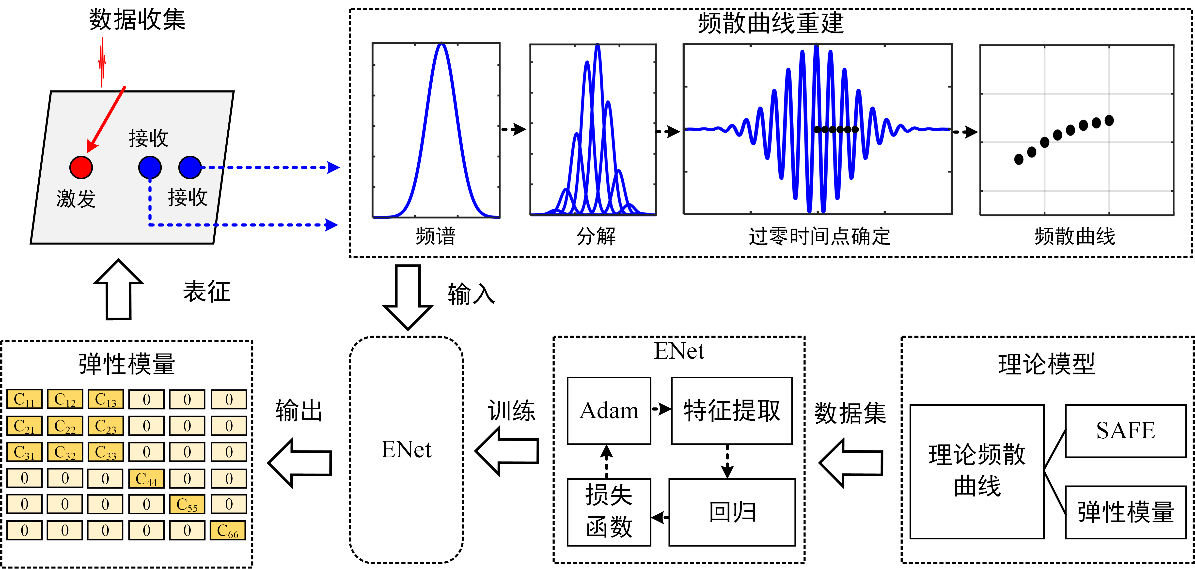 基于ENet与导波频散曲线重建技术,所提出复合材料弹性模量表征方法的总体流程图如图4所示。
