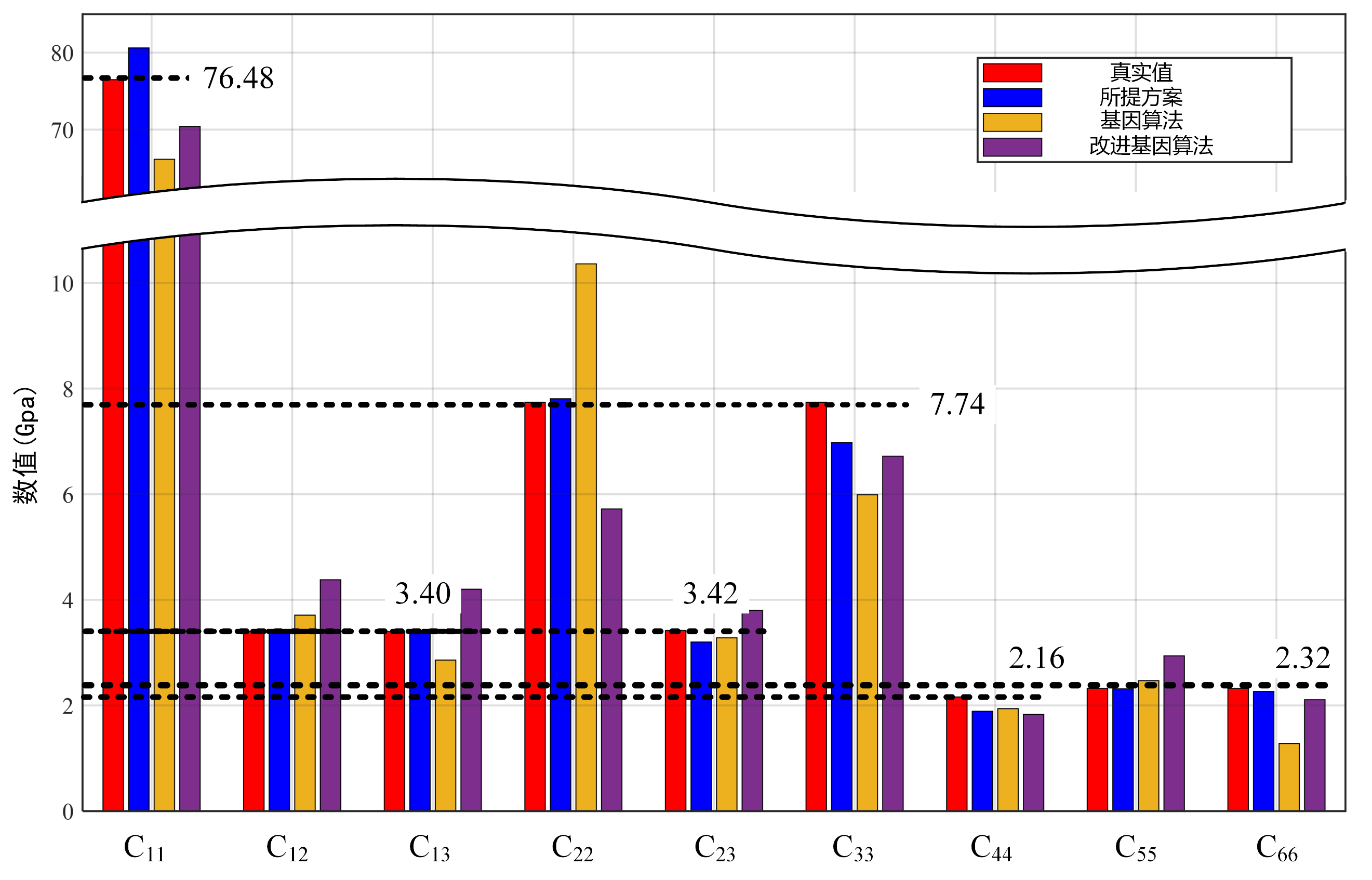 本方法仅使用了3个微型换能器激励和检测导波,它能方便、快捷的监测工程结构力学性能变化。9个弹性模量除C33和C44的检测误差为9.8%和12.5%外,其余检测误差均小于6.5%,表明该方法具有较高的精度。此外,整个弹性模量表征过程仅需0.003秒即可获得,因此,所提方法非常适合于复合材料力学性能的在线表征。
