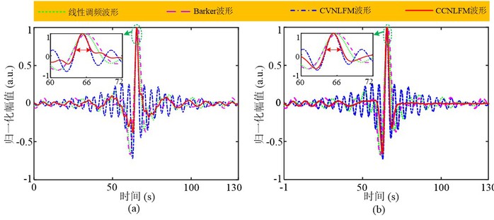 图3 所提波形在(a)不使用窗函数和(b)使用最佳窗函数时的匹配滤波输出对比