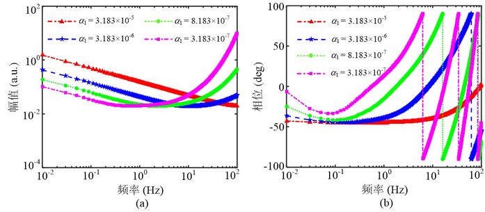 图2 热波响应(a)幅值和(a)相位与半透明陶瓷层热扩散系数间的关系