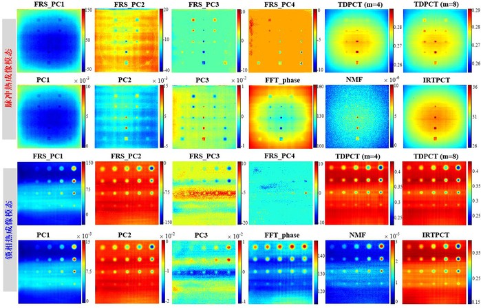 为了进一步增强上述重建结果中碳纤维增强复合材料次表面缺陷的可视性,并分别提出了快速随机稀疏主成分热成像(FRSPCT)和二维主成分热成像(TDPCT)的两种先进的特征识别方法,发现可仅用少量的热图像序列便可实现碳纤维增强复合材料次表面缺陷的高精度、高分辨率检测。