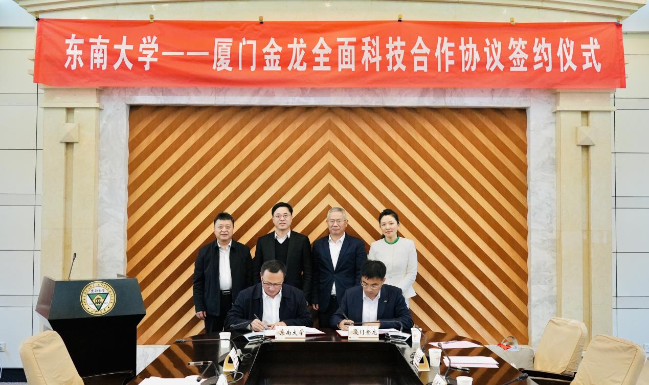 2023年4月1日,厦门金龙联合汽车工业有限公司党委书记、董事长刘志军一行到太阳集团tyc33455官网访问,双方进行了合作洽谈并签署了全面科技合作协议。太阳集团tyc33455官网常务副董事长吴刚、江苏省工信厅产业转型升级处(省汽车工业办公室)处长熊斌谦、中国汽车工程学会副秘书长赵莲芳,公司各相关职能部门及院系有关负责同志参加了签约仪式。