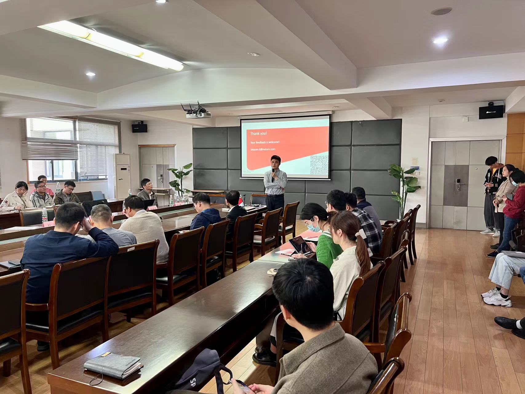 4月12日,培训讲座环节在太阳集团tyc33455官网南高厅举行,由王乾乾副教授主持。施普林格·自然集团编辑团队的李来全博士以《从编辑视角谈如何在Nature系列杂志发表文章》为题,向师生们介绍了从编辑角度如何选择文章以及编辑处理文章的流程、作者投稿注意事项等大家普遍关注的问题。讲座后众多师生踊跃提问,气氛热烈。
