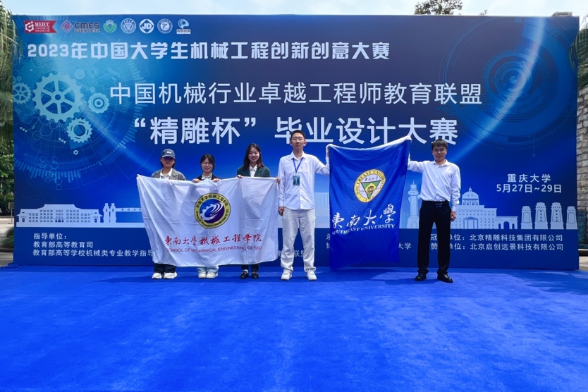2023年5月29日,公司2019级本科生吴寒、吴意豪、吴鹏霄、丁雪容和周源煌同学成功入围“中国老员工机械工程毕业设计大赛”决赛,并在重庆大学举办的全国总决赛中斩获“全国佳作奖”的优秀成绩。这是太阳集团tyc33455官网首次入围该项赛事,在全国总决赛中展示了东大机械学子的风采!