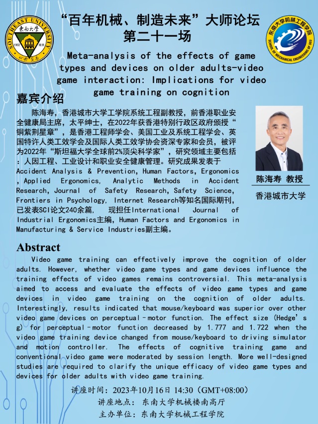 陈海寿,香港城市大学工公司系统工程副教授,前香港职业安全健康局主席,太平绅士,在2022年获香港特别行政区政府颁授“铜紫荆星章”,是香港工程师学会、美国工业及系统工程学会、英国特许人类工效学会及国际人类工效学协会资深专家和会员,被评为2022年“斯坦福大学全球前2%顶尖科学家”,研究领域主要包括:人因工程、工业设计和职业安全健康管理。研究成果发表于Accident Analysis & Prevention,Human Factors,Ergonomics,Applied Ergonomics, Analytic Methods in Accident Research,Journal of Safety Research,Safety Science,Frontiers in Psychology, Internet Research等知名国际期刊,已发表SCI论文240余篇, 现担任International Journal of Industrial Ergonomics主编,Human Factors and Ergonomics in Manufacturing & Service Industries副主编。
