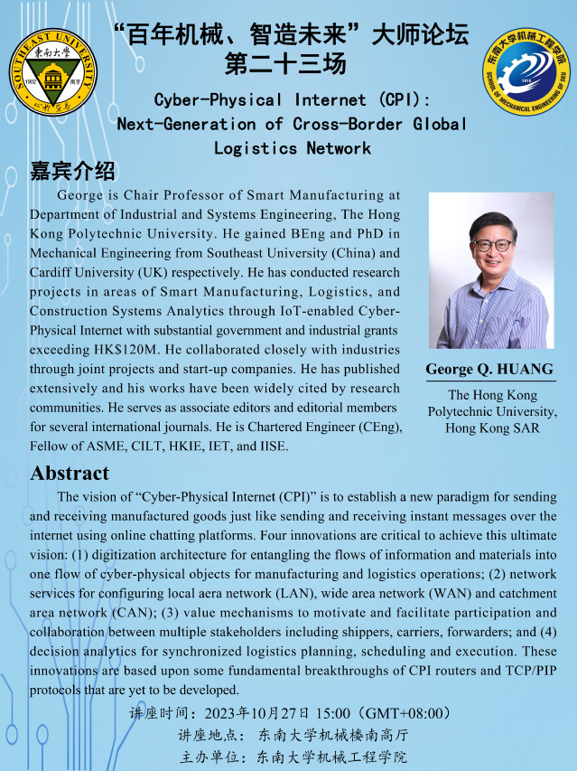 George is Chair Professor of Smart Manufacturing at Department of Industrial and Systems Engineering, The Hong Kong Polytechnic University. He gained BEng and PhD in Mechanical Engineering from Southeast University (China) and Cardiff University (UK) respectively. He has conducted research projects in areas of Smart Manufacturing, Logistics, and Construction Systems Analytics through IoT-enabled CyberPhysical Internet with substantial government and industrial grants exceeding HK$120M. He collaborated closely with industries through joint projects and start-up companies. He has published extensively and his works have been widely cited by research communities. He serves as associate editors and editorial members for several international journals. He is Chartered Engineer (CEng), Fellow of ASME, CILT, HKIE, IET, and IISE.