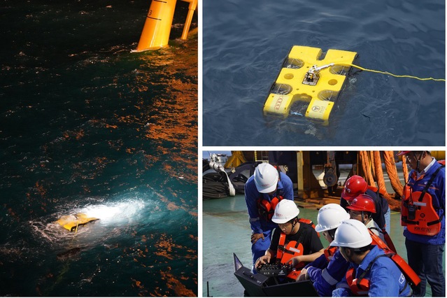 5月23日晚,中国南海。在短短19小时内,龙源振华联合公司机械公司倪中华、刘庭煜团队利用水下机器人(ROV)结合最新研制的水下智能视觉增强系统,成功完成两台导管架快速精准施工。