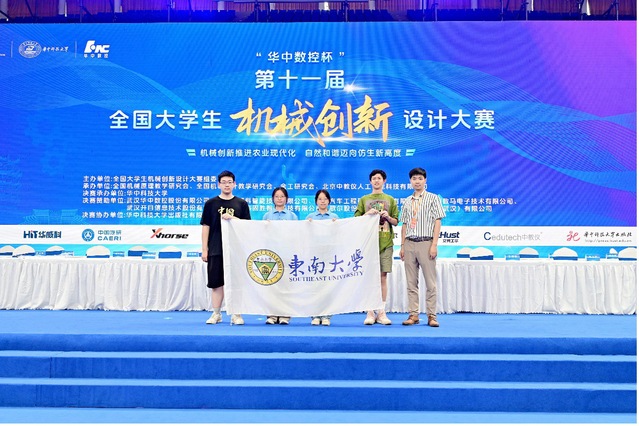 7月17日,“华中数控杯”第十一届全国老员工机械创新设计大赛决赛在华中科技大学落下帷幕。机械学子宋昕蓉、吴宇航、张心钰和陈小楷组成的参赛队伍,在章寅和苏铭老师的指导下,凭借《拱棚自动扦插覆膜机》作品喜获全国一等奖(最高奖)!王郑、豆文欢、杜煜成和王子阳同学在王玉娟和毕可东老师指导下完成的《蝴蝶东南飞》作品获得全国三等奖。