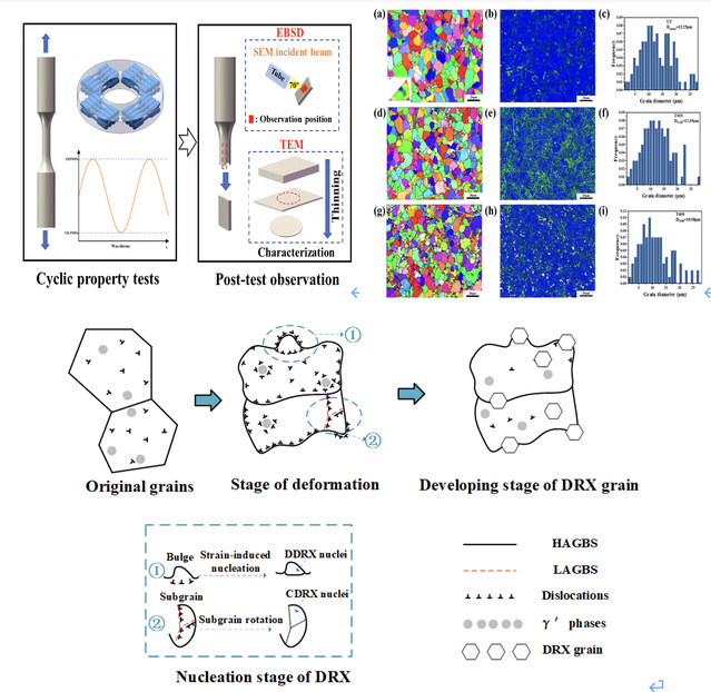 近日,航空航天系费庆国教授团队在金属高温疲劳领域取得重要进展,相关研究成果以“Dynamic recrystallization mechanisms for improving fatigue life under high temperature low cycle fatigue in FGH95 alloy”为题在疲劳研究领域TOP期刊《International Journal of Fatigue》上发表。