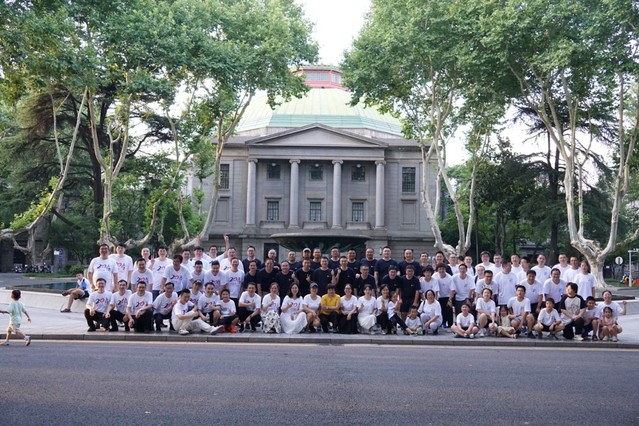 不约而同选择8月3号相聚毕业20周年的020001班、020002班和020003班,一起在大礼堂前合影。