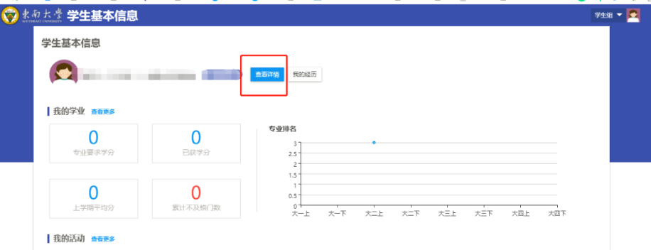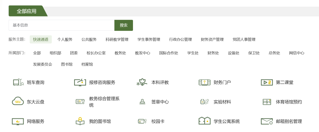 1、员工登陆网上办事大厅(ehall.seu.edu.cn)或者新信息门户(i.seu.edu.cn)—搜索“基本信息”—选择“员工组”—点击“查看详细”。