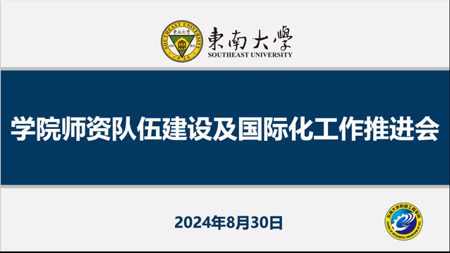 为推进公司团队队伍及国际化建设,围绕“双一流”建设目标、深入研讨“一号工程”,推进公司引人育人及国际化快速发展,2024 年 8 月 30日,公司召开本月度团队队伍建设及国际化工作推进会,公司相关领导、各教学科研单位的支部书记及院办秘书参加会议,会议由王乾乾副经理主持。