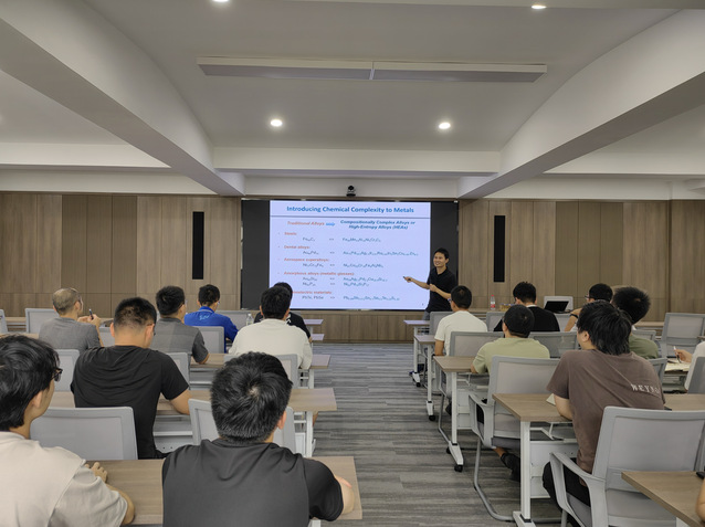 陈文副教授在讲座中首先概述了目前增材制造领域常用的几种技术,包括送粉式、铺粉式及直写式激光增材制造的特点。接着,他详细介绍了激光增材制造技术在新型复杂合金研发中的独特优势。陈教授特别以他团队近期发表在国际顶级期刊《自然》(Nature)上的研究成果为例,深入讲解了激光增材制造新型高熵合金的制备方法、特殊微观组织结构及其卓越性能。