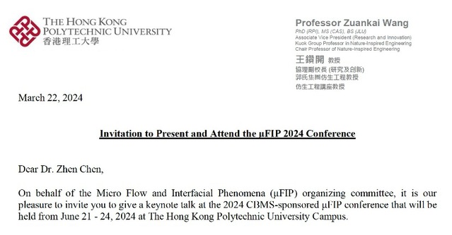 在刚刚过去的2024年微流体与界面现象(Micro Flow and Interfacial Phenomena)学术会议上,公司陈震教授受邀作为keynote报告人出席。