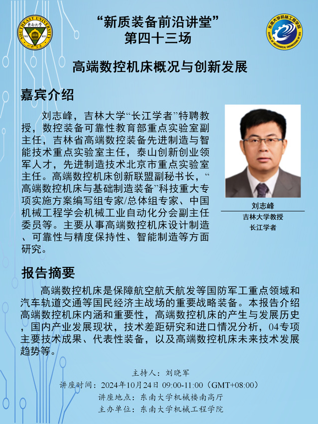 刘志峰,吉林大学“长江学者”特聘教授,数控装备可靠性教育部重点实验室副主任,吉林省高端数控装备先进制造与智能技术重点实验室主任,泰山创新创业领军人才,先进制造技术北京市重点实验室主任。高端数控机床创新联盟副秘书长,“高端数控机床与基础制造装备”科技重大专项实施方案编写组专家/总体组专家、中国机械工程学会机械工业自动化分会副主任委员等。主要从事高端数控机床设计制造、可靠性与精度保持性、智能制造等方面研究。