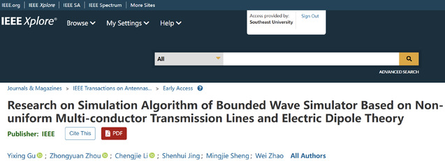 近日,公司机械电子系电磁环境效应研究中心在微波天线领域TOP期刊《IEEE Transactions on Antennas and Propagations》发表研究成果——“Research on Simulation Algorithm of Bounded Wave Simulator Based on Non-uniform Multi-conductor Transmission Lines and Electric Dipole Theory”。
