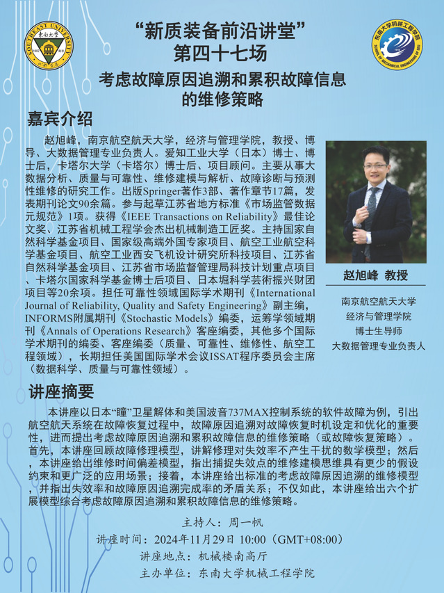 “新质装备前沿讲堂”第四十七场:赵旭峰教授——考虑故障原因追溯和累积故障信息的维修策略