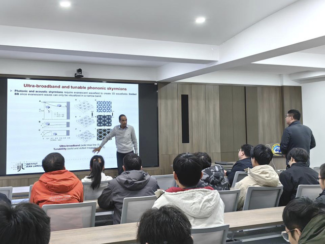 2024年12月10日,Badreddine Assouar教授应邀来公司南高厅作题为《Phononic Skyrmions: A New Horizon for Structuring Sound and Vibrations?》的学术报告。