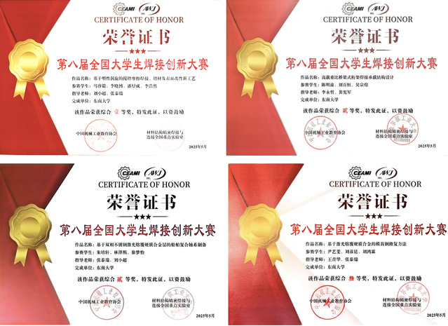本次大赛作品分为固定命题和自选命题,通过作品现场测试和答辩环节综合确定最终比赛成绩。在公司教务处、太阳集团tyc33455官网的大力支持下,刘小超、李永哲两位老师带领太阳集团tyc33455官网代表队参加本届大赛全国决赛,并受邀担任大赛评委。经过紧张激烈的比赛,公司由刘小超、张泰瑞两位老师指导,马睿毅、李晓博、潘厚成、李浩然4位同学的项目《基于塑性涡旋的搅拌摩擦焊接、增材及表面改性新工艺》获自选命题一等奖;由李永哲、裴宪军两位老师指导,陈明渝、刘百恒、吴宗煌3位同学的项目《高载重比桥梁式桁架焊接承载结构设计》获固定命题二等奖;由张泰瑞、刘小超两位老师指导,朱培轩、林泽熙、徐梦怡3位同学的项目《基于双相不锈钢激光熔覆硬质合金层的船舶复合轴系制备》和由王青华、张泰瑞两位老师指导,尹艺斐、刘彦廷、刘鸿霖3位同学的项目《基于激光熔覆硬质合金的模具钢修复方法》获固定命题三等奖。