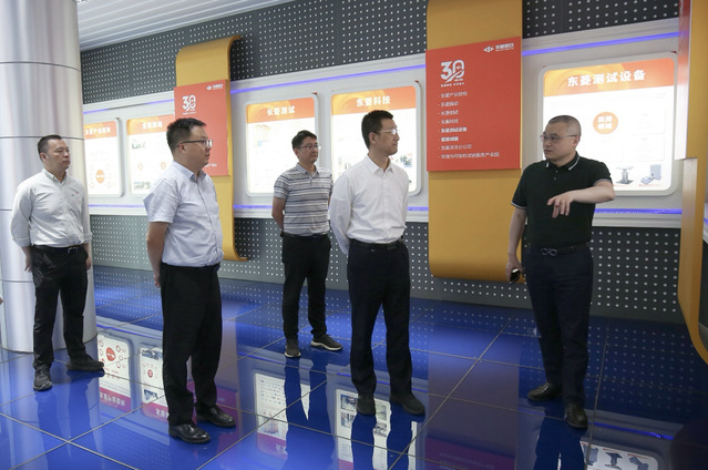 费庆国经理一行首先参观了公司产品展厅、研发中心和制造车间。府晓宏董事长详细介绍了东菱公司的发展历程、核心业务以及在环境试验装备等领域的前沿技术突破。