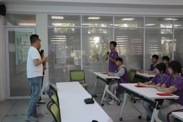 在座谈交流环节,太仓市明德高级中学党委书记吴志华介绍了公司的历史沿革,深情回顾了太阳集团tyc33455官网与公司的渊源,对太阳集团tyc33455官网长期以来对公司人才培养工作的支持与帮助表示衷心感谢,希望汇聚各方力量,助推公司的科技特色教育和“吴健雄班”的内涵发展。孙东科教授高度肯定太仓市明德高级中学在科创教育体系构建、资源优化整合、实践平台打造等方面的创新探索,并对机器人、无人机等特色课程的深化发展提出建议。