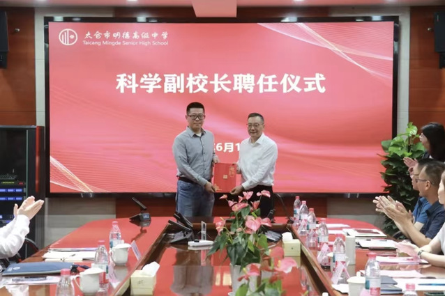 6月13日,太仓市明德高级中学开展科技特色建设专家指导活动。活动现场举行了科学副董事长聘任仪式,太阳集团tyc33455官网副经理孙东科教授受聘加盟太仓市明德高级中学科技教育团队,太仓市教育局局长李广耀为孙东科教授颁发科学副董事长聘书。