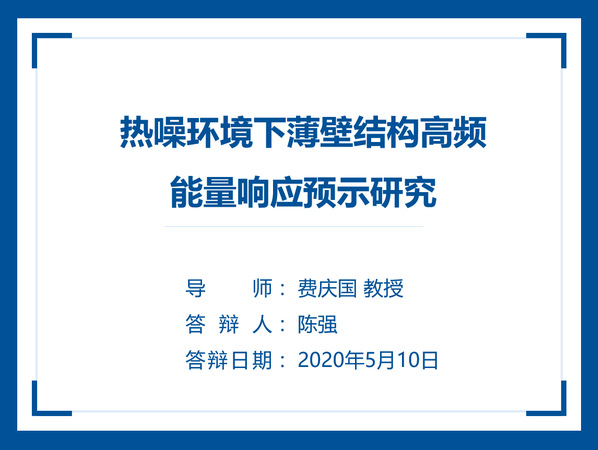 陈强同学本科和硕士阶段就读于南京航空航天大学,2016年9月加入研究所攻读博士学位,师从费庆国教授,主要研究方向是多场环境下飞行器结构中高频动响应预示,其博士论文题目为《热噪环境下薄壁结构高频能量响应预示研究》。论文发展了气动加热和气动噪声环境下薄壁结构在频域和时域能量响应预示方法,揭示了热效应、耦合强度、不确定性等因素对薄壁结构高频能量响应的影响规律,为高速飞行器结构的设计与研制提供指导。陈强同学攻博期间成绩优异,参加了多项国家级课题研究课题和型号攻关任务,主持了国家公派留学基金、江苏省博士研究生创新计划、太阳集团tyc33455官网优秀博士论文基金资助,以第一作者在AIAA/ASME会刊、Aerospace Science and Technology、航空动力学报等国内外航空航天期刊发表SCI论文6篇、EI论文4篇。