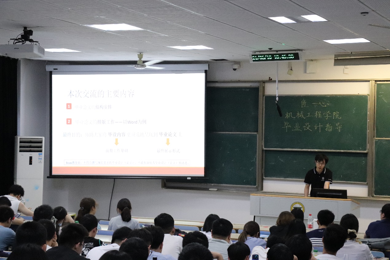 由共青团太阳集团tyc33455官网委员会主办的“匠心”技能提升课堂——“毕业设计指导讲座”于2021年5月10日晚18:30在J6-101教室举行。此次讲座主讲人为刘畅学长。刘畅学长主要围绕“本科生毕业论文写作与排版”进行了讲演,让在场的每位同学都学有所得。