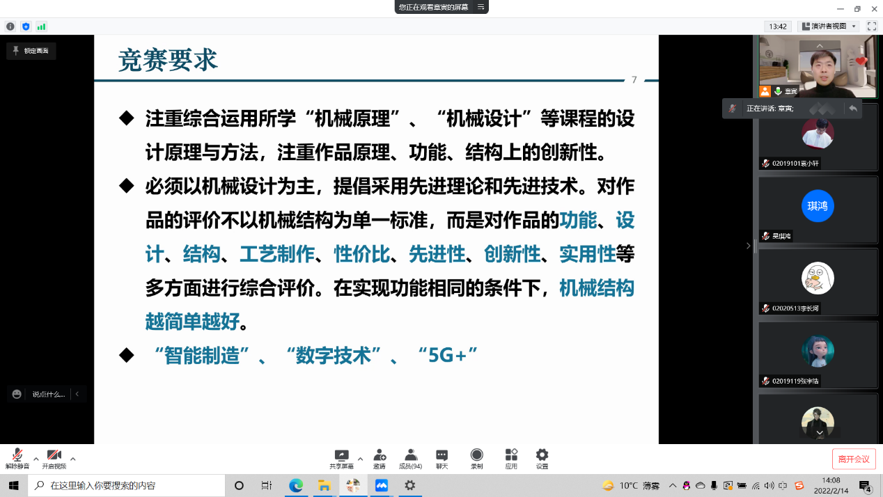2月14日下午,由具有丰富竞赛指导经验的章寅老师、魏志勇老师和有参赛经验的季睿学长开展分享讲座,针对员工如何参加机械创新设计大赛进行培训。