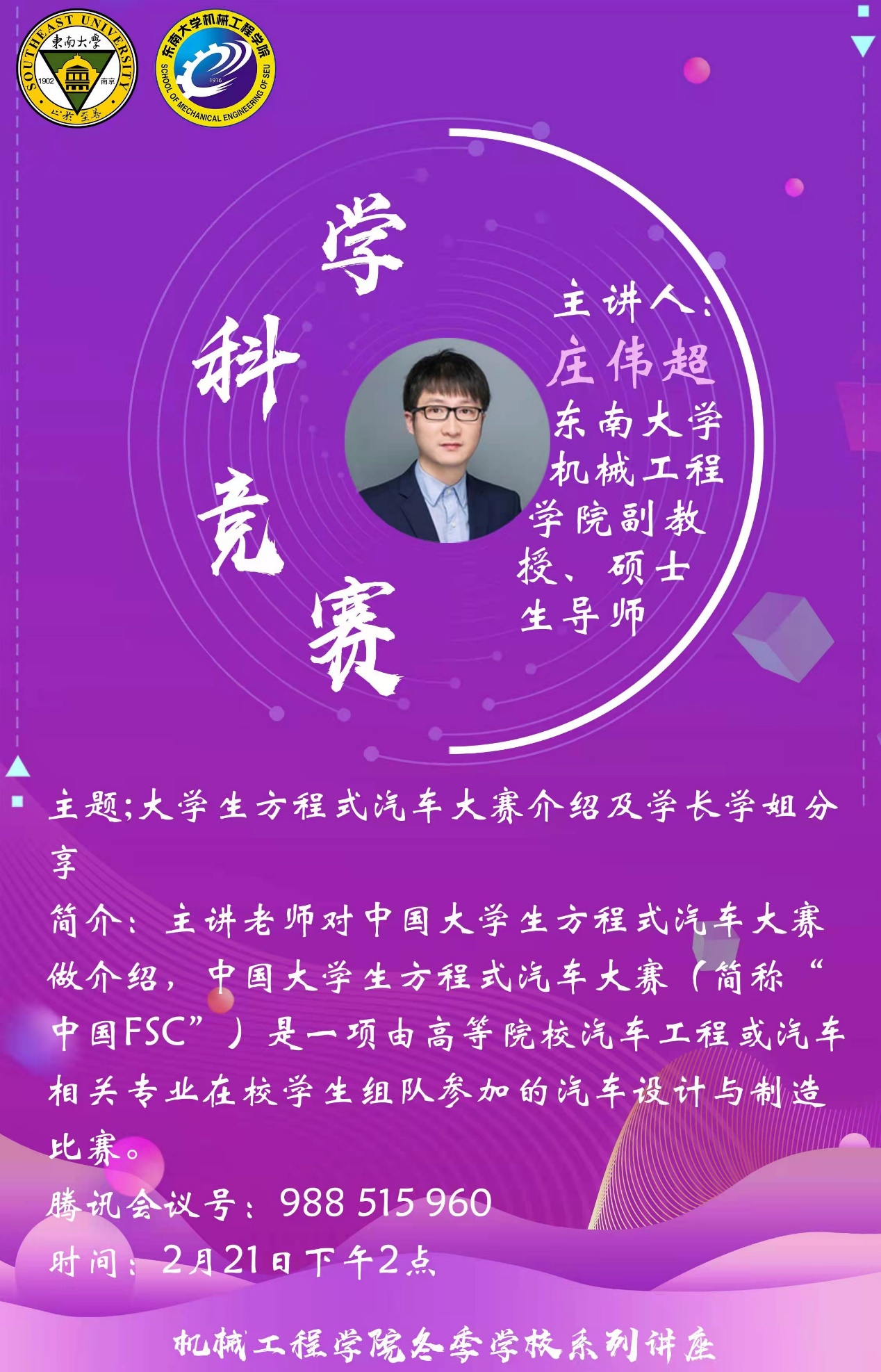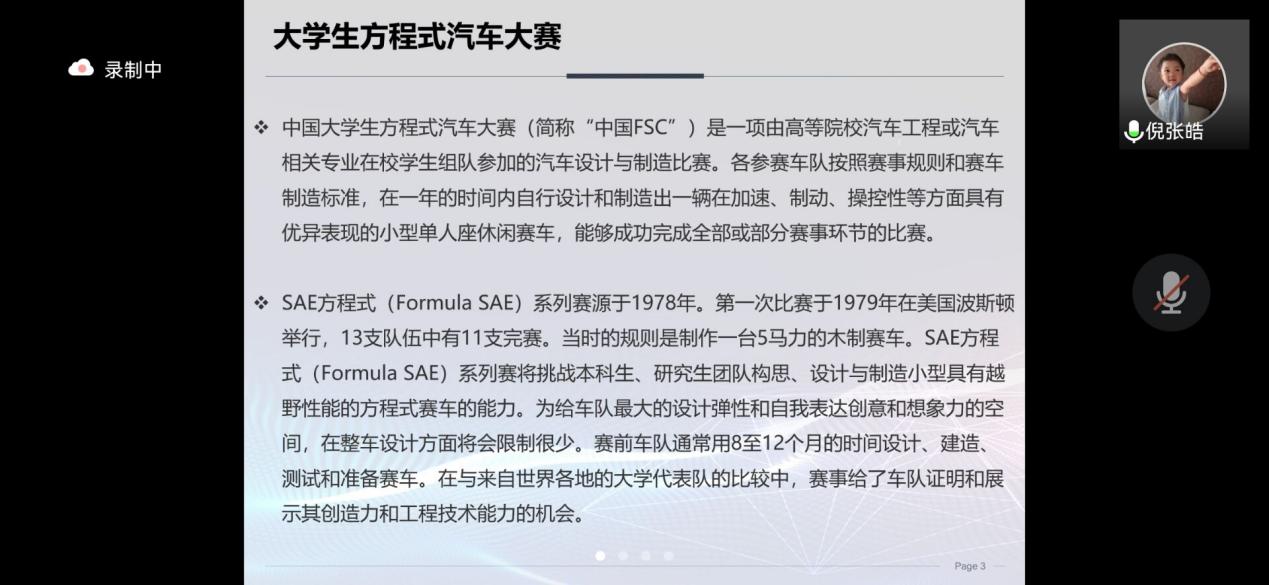 2022年2月21日,太阳集团tyc33455官网方程式赛车队的指导老师和成员们向我们介绍了赛车队的具体工作。首先发言的是太阳集团tyc33455官网方程式赛车队的队长倪张皓同学。倪张皓同学先对太阳集团tyc33455官网方程式赛车队以及中国老员工方程式汽车大赛进行了简单的介绍,随后详细说明了赛车队的组成形式。