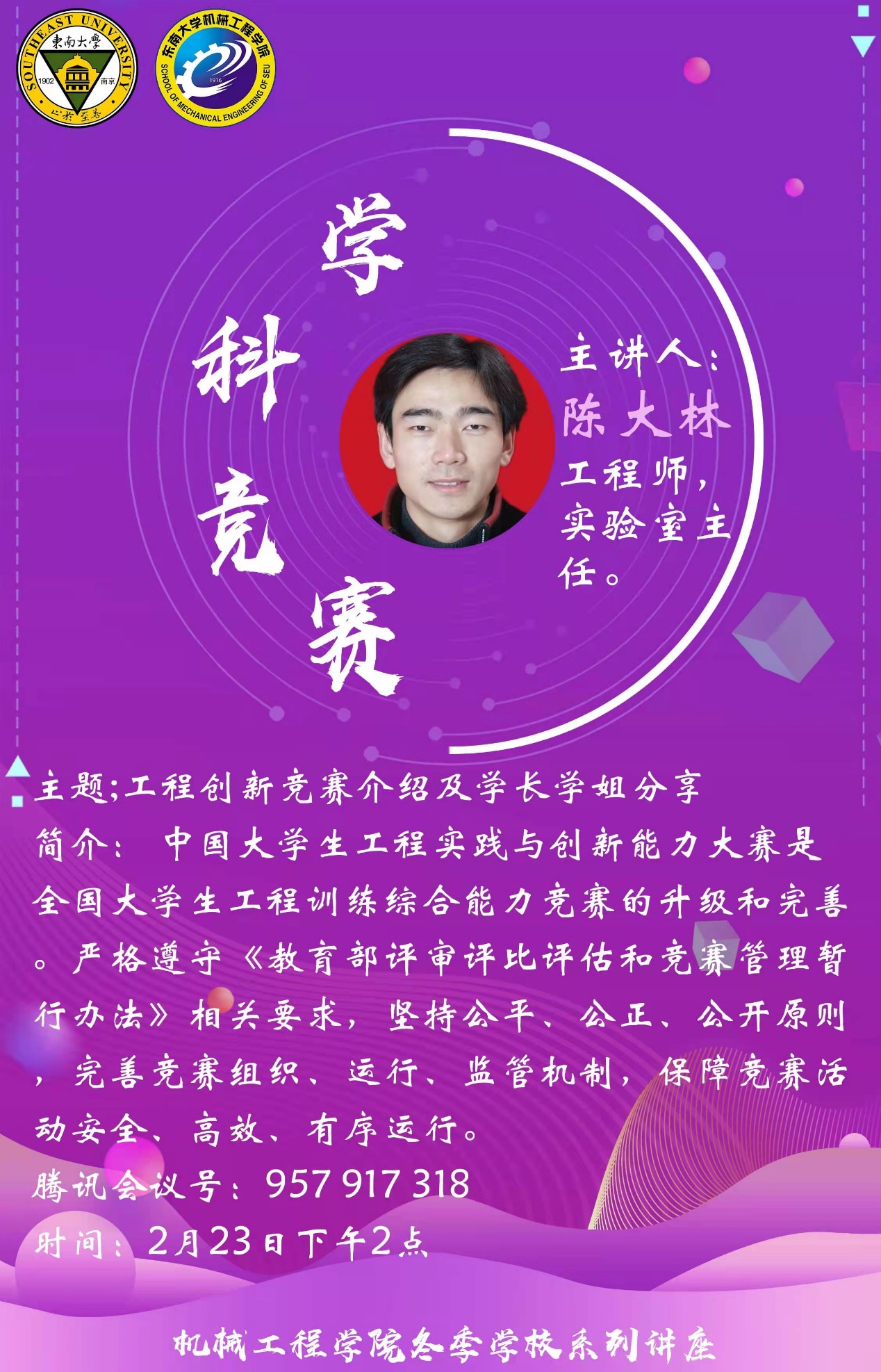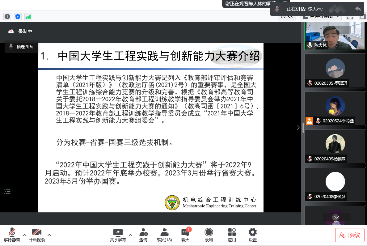 2月23日下午,陈大林老师和杨家豪、张瑞升、康炜铭同学开展了分享讲座,针对同学们如何参加中国老员工工程实践与创新能力大赛以及太阳集团tyc33455官网本科生工程训练综合能力竞赛进行指导培训。