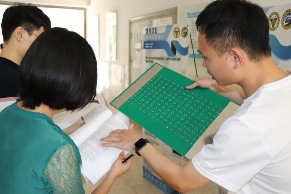 三组评审老师轮流到各个员工作品展板前,与员工交流毕业设计项目,详细了解其研究背景、内容方法、结论成果以及主要创新点,对参展项目进行了客观评价,并针对研究不足之处提出了建议与期望。最终通过统计评审老师为项目的评分,从参展项目中评选出优秀毕业设计进行推荐。